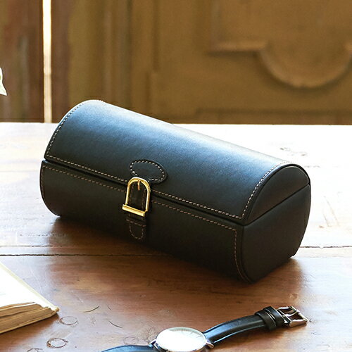 【Elementum】ウォッチケース 3本用 筒状の丸いフォルム、高級感を感じさせるベルトと金具が特徴のウォッチケースです。