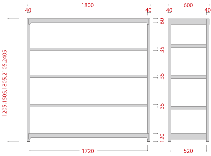 サイズ 高さ 横幅 奥行 表記寸法 1500 1800 600 外寸法 1505 1800 600 棚板寸法 1720 570 ※設置場所は外寸法+50mm位の余裕をもって下さい。